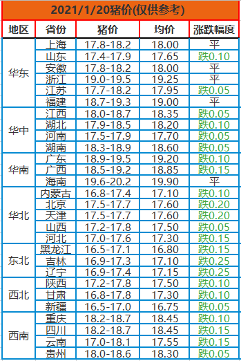 今日全国生猪收购价格下跌0.10元/斤,全国均价17.95元/斤,0涨23跌5稳,各种物价上涨,让猪肉消费疲软,利空猪价。北方养殖户出栏加快,都趁着年前高价出手,屠企压价,南方拉猪车开始抢购,有利于本地猪价稳定,预计近期稳中小涨。南方受北方跌价影响,猪价继续下落,规模猪场出栏计划增加,标猪开始加快出栏,农村大集受到限制,影响了猪肉消费,近期小跌。